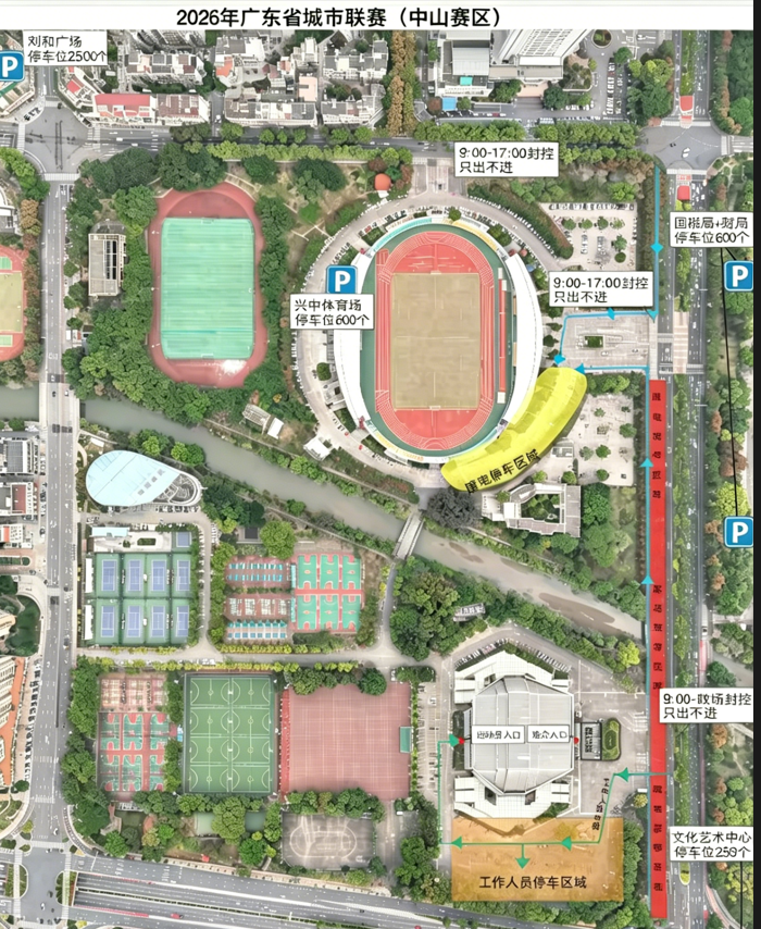 中山體育館:4月11日9:00至比賽結(jié)束,實(shí)施臨時(shí)交通管控,車輛只出不進(jìn)。