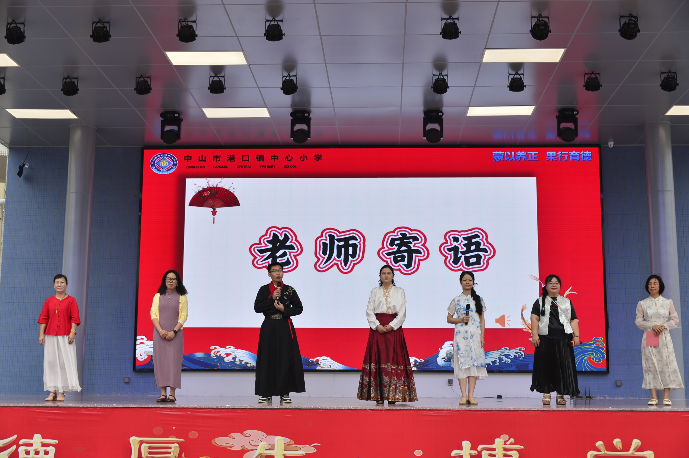 師恩如山,教誨如燈。同學們肅立向老師行禮,齊聲致謝。老師們與孩子一一擁抱、握手,傳遞關(guān)愛與鼓勵。隨后,四年級級長吳坤嬋與全體班主任上臺為孩子們送上成長祝福。