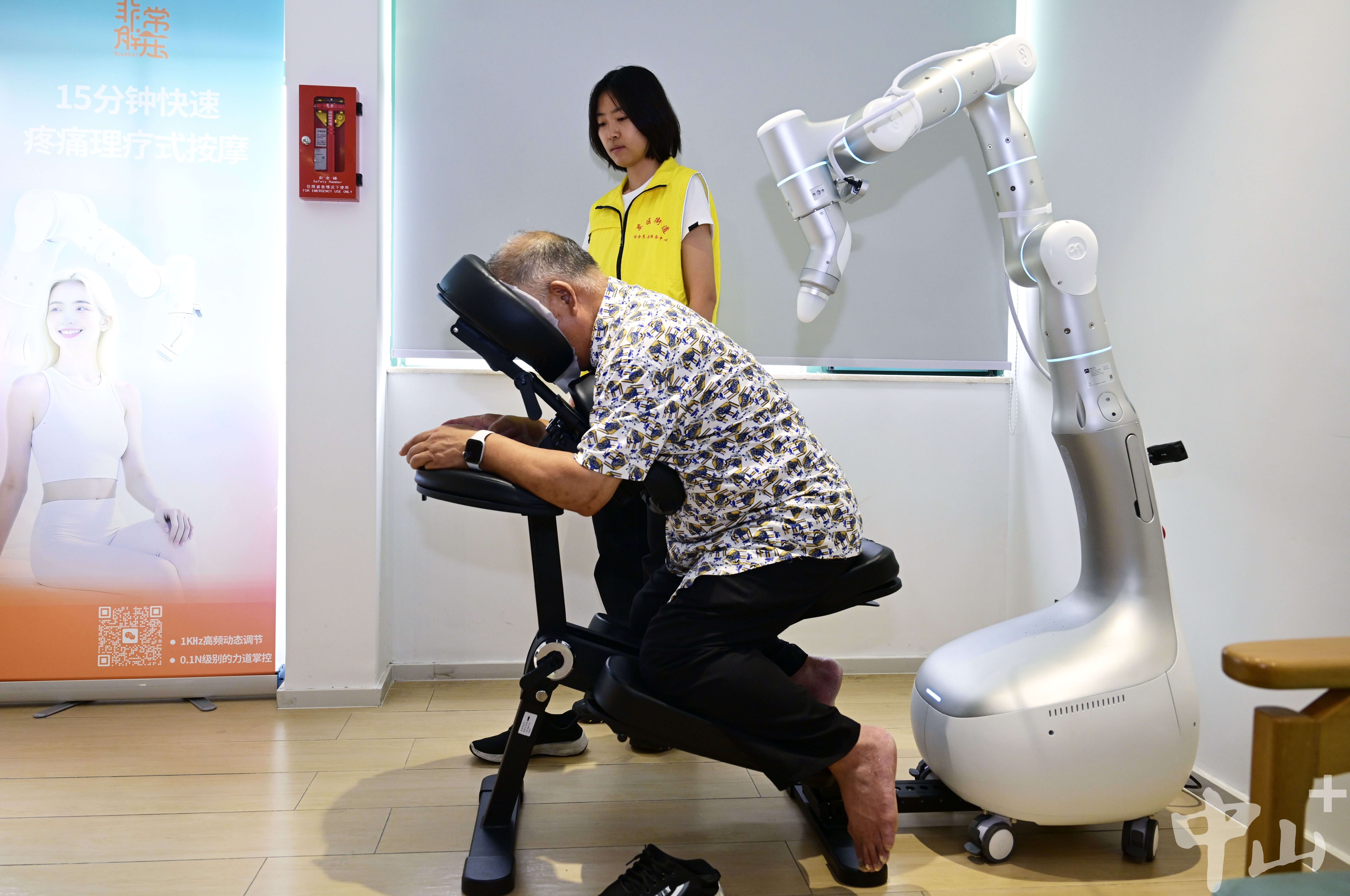 “這比按摩椅更舒服!”剛體驗完按摩服務(wù)的市民馮叔連連點贊,他表示,這臺機(jī)器人比按摩椅更靈活,力度適中、手法柔和,能精準(zhǔn)定位酸痛部位,緩解疲勞的同時,也讓他感受到科技魅力。
