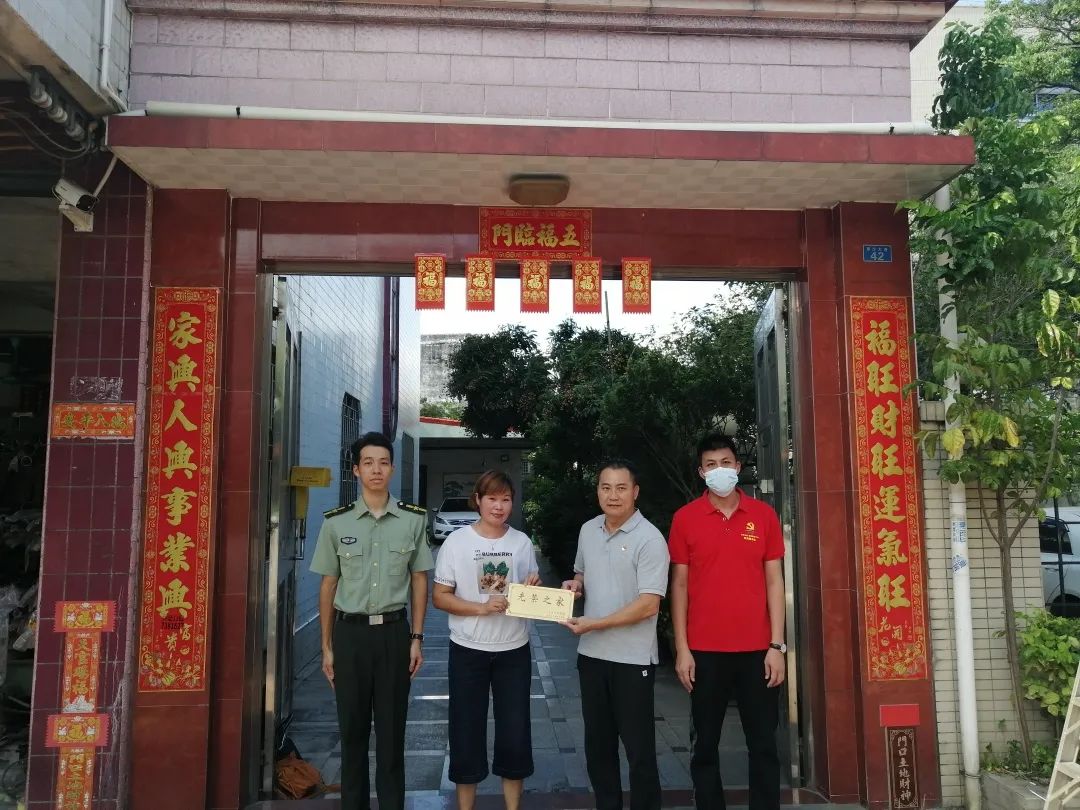 為進(jìn)一步鞏固和發(fā)展軍政軍民團(tuán)結(jié),弘揚(yáng)新時(shí)代擁軍優(yōu)屬的優(yōu)良傳統(tǒng),推進(jìn)軍人榮譽(yù)體系建設(shè),營(yíng)造關(guān)愛軍人的濃厚社會(huì)氛圍,7月15日上午,阜沙鎮(zhèn)武裝部、退役軍人服務(wù)中心聯(lián)合走訪今年入伍的6名新兵家屬,為其家庭懸掛“光榮之家”門牌,送上入伍電子相冊(cè),了解新兵在部隊(duì)的訓(xùn)練、學(xué)習(xí)和生活情況,增強(qiáng)軍屬家庭的榮譽(yù)感和自豪感,讓他們切實(shí)感受到黨和政府的關(guān)愛和溫暖。 在新兵周志偉家中,其父親周錦元自豪地說(shuō):“雖然非常舍不得志偉離開我們,但是送他到部隊(duì)鍛煉,為國(guó)家作貢獻(xiàn),心里還是很高興的,也非常自豪。今天你們來(lái)給我家掛光榮牌、送相冊(cè),我們?nèi)倚睦锱?,非常感謝黨和政府對(duì)我們的關(guān)心?!?/p>一人參軍,全家光榮 一塊刻著“光榮之家”的小小牌匾 對(duì)軍屬家庭來(lái)說(shuō)卻是一份特殊的“禮物” 牌匾雖小