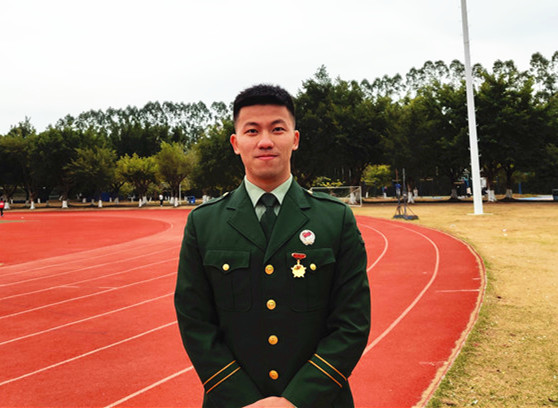 “小時(shí)候,我看過(guò)一部名為《烈火雄心》的電視劇,講的是消防員奮勇?lián)尵壬?,以濃煙考?yàn)斗志、以烈火洗煉人生的故事,那時(shí)我就對(duì)執(zhí)行任務(wù)類(lèi)型的職業(yè)非常向往。再加上男生打小對(duì)飛機(jī)、槍支武器都有一種特殊的感覺(jué),那時(shí)候就在想,有機(jī)會(huì)一定要去部隊(duì)歷練一番試試?!比尾敻嬖V記者,大二那年,他終于夢(mèng)圓軍營(yíng),服役于武警河南總隊(duì)某中隊(duì)?!?個(gè)月的新兵連非常充實(shí),隊(duì)列訓(xùn)練、拉練、長(zhǎng)途行軍......讓我印象深刻的是在行軍過(guò)程中,不管去到什么地方,只要一身軍裝在身,當(dāng)?shù)氐男∨笥讯紩?huì)朝我敬禮,老百姓也特別友善,讓我感到非常自豪,這種軍民魚(yú)水情讓我感覺(jué)非常好?!?/p> 服役期間,因表現(xiàn)突出,任伯聰被評(píng)為“優(yōu)秀義務(wù)兵”,于2019年退出現(xiàn)役。離開(kāi)部隊(duì)后,他重返大學(xué)校園完成學(xué)業(yè),并加入了學(xué)校的國(guó)防教育服務(wù)中心,為學(xué)校的征兵宣傳工作奔走發(fā)聲。在校期間,任伯聰從未忘記自己曾經(jīng)是一名軍人?!拔覉?jiān)持每天長(zhǎng)跑10公里,練習(xí)單杠,也一直有按照之前部隊(duì)的訓(xùn)練標(biāo)準(zhǔn)來(lái)保持鍛煉。”  左一為任伯聰。