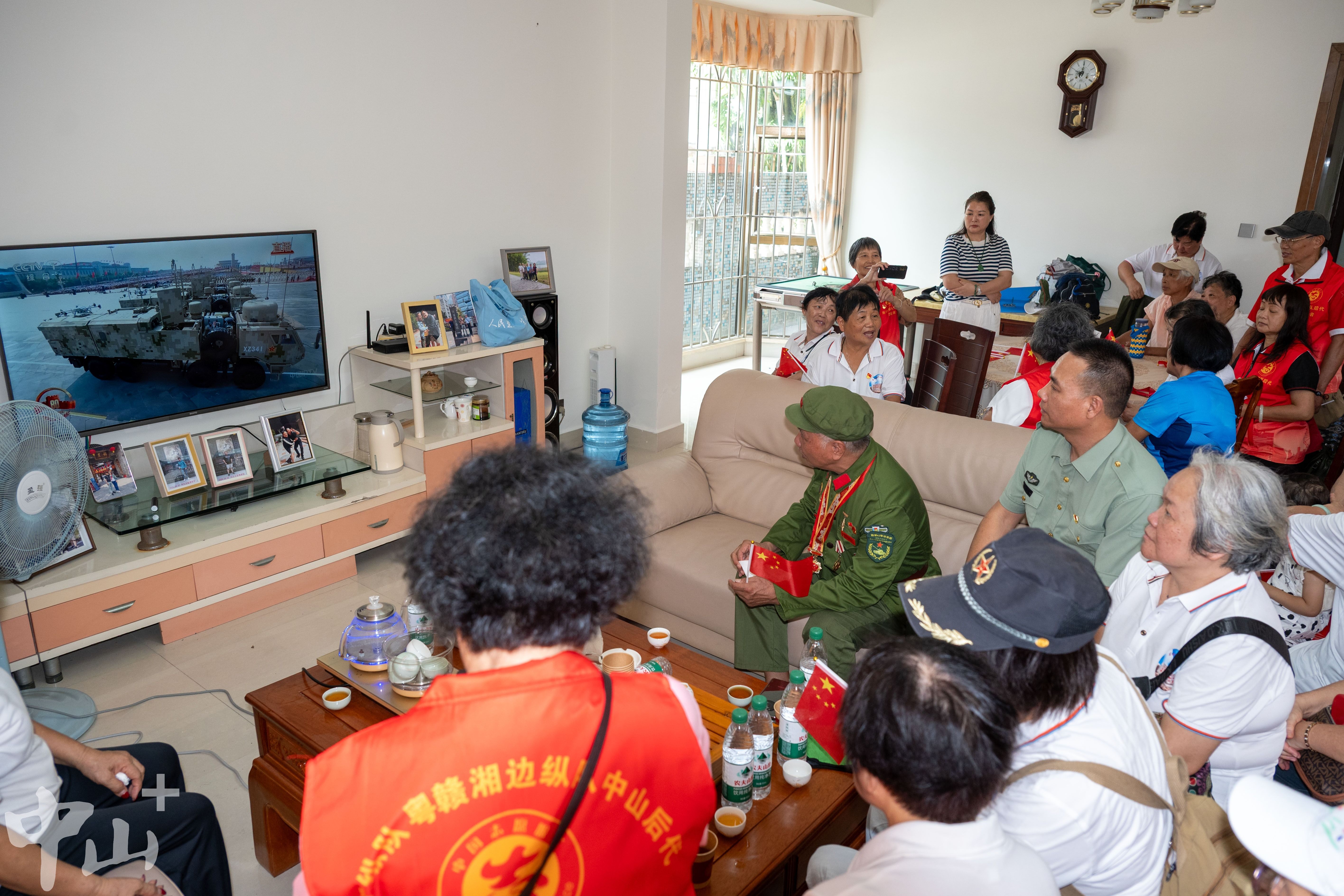 9月3日上午,廣東人民抗日游擊隊(duì)東江縱隊(duì)、粵贛湘邊縱隊(duì)中山后代和功勛老兵齊聚抗戰(zhàn)時(shí)期“廣東省革命老區(qū)村莊”——南朗街道白企村,共同觀看紀(jì)念中國(guó)人民抗日戰(zhàn)爭(zhēng)暨世界反法西斯戰(zhàn)爭(zhēng)勝利80周年大會(huì)直播盛況。他們紛紛表示,看到強(qiáng)大的祖國(guó)越來越繁榮,非常激動(dòng),也非常自豪。 9月3日上午,東江縱隊(duì)、粵贛湘邊縱隊(duì)中山后代和功勛老兵齊聚在一起,觀看閱兵盛典。見習(xí)記者 張景天 攝