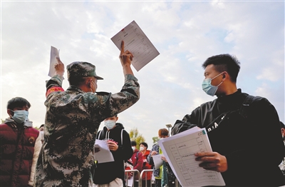 應(yīng)征青年核酸檢測(cè)合格后,在帶檢員的引導(dǎo)下進(jìn)入體檢環(huán)節(jié),全程實(shí)行全封閉式管理。