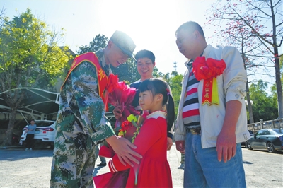 “咚咚咚咚鏘……”3月8日下午,五桂山街道龍石村黨群服務(wù)中心前鑼鼓聲震天,醒獅踩著激昂的鼓點騰躍翻滾,引來許多村民圍觀。原來,這里正舉行龍石村新兵入伍歡送儀式。 葉陽浩、胡家威兩名準(zhǔn)新兵身披“光榮入伍”的紅色綬帶和大紅花昂首挺胸站在太陽下,新兵家屬前來歡送?!瓣柡频奶檬迨濉⑼夤褪骞荚鴳?yīng)征入伍,他能進(jìn)部隊得到鍛煉,我們作為他的父母感到很光榮、很幸福?!比~陽浩的父母胸戴“光榮家屬”的大紅花,激動地說。 歡送現(xiàn)場,新兵們與村委會工作人員及家屬合影留念,并接受了五桂山學(xué)校兩名小學(xué)生的敬禮。 隨后,龍石村的兩名新兵與五桂山社區(qū)的一名新兵匯合,三人一齊前往五桂山街道辦事處參加新兵歡送儀式。會上,五桂山街道黨工委副書記、辦事處主任張喬楚為新兵發(fā)放慰問金及獻(xiàn)鮮花。活動現(xiàn)場,還有一幕熱鬧而溫馨的場面令人感動。三名準(zhǔn)新兵紛紛向父母獻(xiàn)花表達(dá)感激之情:給母親一個擁抱、給父親一個軍禮,父母也送上一句句殷切叮囑。 記者從中山市征兵辦獲悉,中山目前已經(jīng)圓滿完成2022年上半年征兵工作,即日起,來自各鎮(zhèn)街的300多名雙合格準(zhǔn)新兵將前往中山市國防教育基地進(jìn)行役前訓(xùn)練,新兵16日開始起運入營。 |