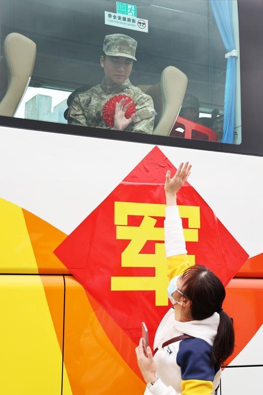 3月15日,中山市2023年新兵入伍歡送大會(huì)在中山市文化藝術(shù)中心廣場(chǎng)舉行。300多名新兵身穿迷彩服,胸戴大紅花,即將奔赴軍營(yíng)。中山軍分區(qū)大校司令員、市征兵工作領(lǐng)導(dǎo)小組副組長(zhǎng)李云濤,市委常委、中山軍分區(qū)大校政治委員、市征兵工作領(lǐng)導(dǎo)小組副組長(zhǎng)劉燦瑩,市征兵工作領(lǐng)導(dǎo)小組副組長(zhǎng)、副市長(zhǎng)、市公安局局長(zhǎng)魯罡,市征兵工作領(lǐng)導(dǎo)小組副組長(zhǎng)、市征兵辦主任、軍分區(qū)大校副司令員李健出席送兵儀式。 300多名新兵身穿迷彩服,胸佩大紅花,即將奔赴軍營(yíng)。記者 文波 攝