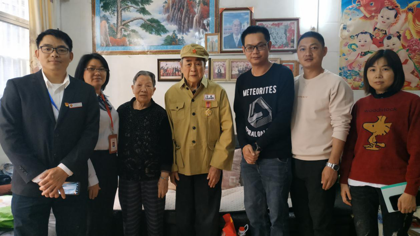 新春佳節(jié)的腳步漸近,歡樂喜慶的氣氛漸濃,為了讓更多人感受到溫暖和祝福港口鎮(zhèn)持續(xù)開展慰問活動走訪退役軍人。 近日,市退役軍人服務(wù)中心聯(lián)合鎮(zhèn)退役軍人服務(wù)中心開展退役軍人慰問活動,為他們送去黨和政府的溫暖關(guān)懷及節(jié)日問候! 李生(右4),88歲,1951年至1953年期間參加抗美援朝,1957年從朝鮮返回復(fù)員,是港口鎮(zhèn)唯一健在的抗美援朝老戰(zhàn)士。 梁細(xì)根(右4),63歲,參加過對越自衛(wèi)反擊戰(zhàn),曾在戰(zhàn)時(shí)立三等功。 在退役士兵吳干榮(左2)家中,慰問組向他講解危房改造的政策,鼓勵(lì)他積極面對生活困難,堅(jiān)定信心,振奮精神。 梁澤祥(右2)是參戰(zhàn)退役軍人,慰問組轉(zhuǎn)達(dá)了市退役軍人事務(wù)局、市工商聯(lián)和石岐青協(xié)對他的問候。