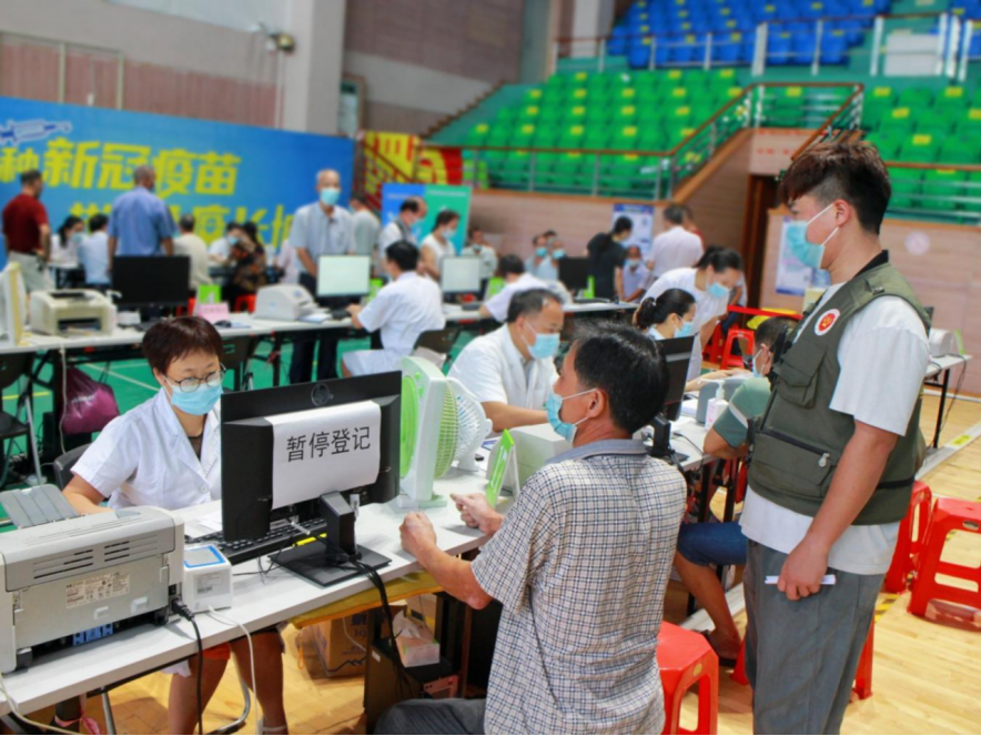 東鳳鎮(zhèn)臨時接種點現(xiàn)日均接種500劑次,在臨時接種點現(xiàn)場,等待接種的重點優(yōu)撫對象佩戴好口罩,在工作人員和退役軍人志愿者的指引下有序進入接種點。 志愿者們依次指引重點優(yōu)撫對象們?nèi)サ阶稍兊怯泤^(qū)、量血壓區(qū)、接種區(qū)和留觀區(qū),逐個完成新冠疫苗接種。