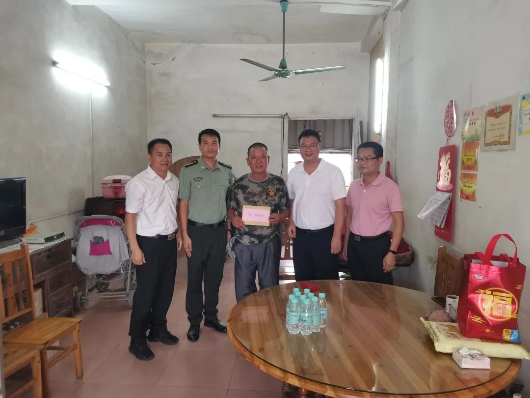 在中國(guó)人民解放軍建立94周年來(lái)臨之際,為進(jìn)一步弘揚(yáng)“擁軍優(yōu)屬、擁政愛(ài)民”的光榮傳統(tǒng),關(guān)心關(guān)愛(ài)軍人軍屬,7月30日上午,阜沙鎮(zhèn)黨委副書(shū)記、鎮(zhèn)長(zhǎng)李健華帶領(lǐng)公共服務(wù)辦、武裝部、退役軍人服務(wù)中心到現(xiàn)役、退役軍人家中開(kāi)展慰問(wèn)活動(dòng)。