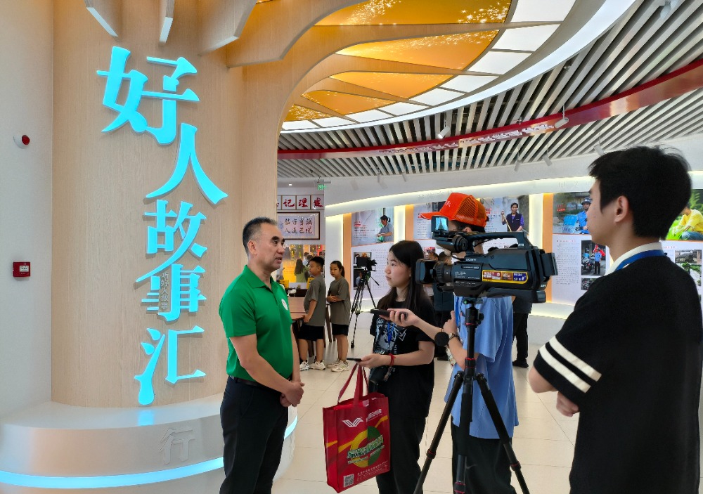 本次調(diào)研中,來自中央、省、市約20家媒體的記者,先后走訪東鳳鎮(zhèn)退役軍人服務(wù)中心、中山好人館等地。通訊員供圖 16日上午,媒體采風團來到了中山好人館,退役軍人代表李克和孫宏寧帶領(lǐng)采風團觀摩好人館,并介紹了退役軍人在志愿服務(wù)上如何為推動全市的社會道德建設(shè)貢獻力量?!爸猩酵艘圮娙死弥驹阜?wù),宣傳了軍人作風優(yōu)良的傳統(tǒng),這種公益形式也是對社會力量的補充,能夠?qū)θ鐣鸬桨駱幼饔谩!绷私獾街猩绞胁蹞碥娭驹阜?wù)隊深入基層開展國防和愛國主義教育、中山市擁軍支前紅旗服務(wù)隊參與各項日常生活應(yīng)急救援的事跡后,《小康》雜志記者王莉華說,中山市退役軍人深度參與公益所展現(xiàn)出的擔當和作為給她留下深刻印象。中國報道網(wǎng)《前沿資訊》欄目主編陳偉贊發(fā)出感慨,“志愿服務(wù)隊的工作非常扎實,退役軍人服務(wù)中心在用心用情服務(wù)退伍老兵上也做得很到位。”  退役軍人代表李克接受采訪。通訊員供圖