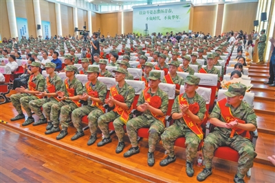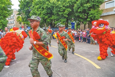 身著迷彩服,佩戴光榮花,一張張青春臉龐上滿是憧憬之情。金秋九月,中山又一批有志青年背上行囊,意氣風發(fā)奔赴軍營。 今年下半年,全市共有3000多名適齡青年報名應(yīng)征,經(jīng)過體檢、政治考核、役前教育等層層選拔,共征集了300多名男兵,在讀大學生征集比例、大學畢業(yè)生征集比例再創(chuàng)歷史新高,圓滿完成了上級賦予的任務(wù)。 “希望你們不管在何處服役,是哪個兵種,都銘記父老鄉(xiāng)親的殷殷囑托,在部隊大力弘揚中山‘敢想敢闖、敢為人先’的精神,展示出‘中山兵’的良好精神風貌,沖鋒在前、勇?lián)笕?、奮斗奉獻,努力為中山增光添彩。祝新戰(zhàn)友們一路順風,刻苦訓練,能打勝仗,捷報頻傳!”在出席中山2023年下半年新兵歡送儀式時,中山市征兵工作領(lǐng)導小組副組長、中山軍分區(qū)大校司令員李云濤鄭重地說。 來自三鄉(xiāng)鎮(zhèn)的新兵代表馮林研究生畢業(yè)于青島農(nóng)業(yè)大學,他鄭重承諾:“到部隊后我們一定牢記使命,安心服役、刻苦訓練、嚴守紀律、積極進取,為祖國和平安寧扛好槍、站好崗,不辜負國家和家鄉(xiāng)人民的期望!” 敲鑼打鼓,列隊歡迎。一場歡送儀式,就是一次生動的國防教育。歡送儀式上,除了以東鳳鎮(zhèn)新兵張學培家庭“三代從軍”事跡為背景創(chuàng)作的原創(chuàng)詩歌朗誦《致敬夢想的接力》、男聲四重唱《強軍戰(zhàn)歌》等文藝表演,新兵還展示了軍體拳,動作干凈利落整齊,儼然已有軍人的模樣。現(xiàn)場,省級非物質(zhì)文化遺產(chǎn)起灣金龍展演也來助陣,只見金龍起舞、鑼鼓喧天,熱鬧非凡。 兒行千里母擔憂,歡送現(xiàn)場,不少家長熱淚盈眶,拿起手機記錄著孩子入伍的珍貴畫面,送兵車緩緩啟動,家長們的目光卻始終不肯轉(zhuǎn)移。一路跟隨,久久不肯離去…… 登上大巴車,新兵們揮一揮手:“再見,中山!軍營,我來啦!” 記者 黃藝杰 張倩 通訊員 黃嘉裕 圖編 文智誠 ◆編輯:龍慧◆二審:蘇鵬蘊◆三審:周亞平 |