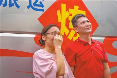 ▲送兵車緩緩啟動,家人們依依惜別。