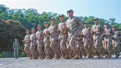 ▲隨著一次次的訓(xùn)練,新兵逐漸找到節(jié)奏。記者 張景天 攝
