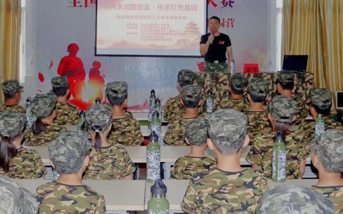 當(dāng)天下午,“老兵宣講團(tuán)”成員梁華來(lái)到坦洲鎮(zhèn)雛鷹國(guó)防教育研學(xué)基地,為開(kāi)展夏令營(yíng)軍訓(xùn)的60余名學(xué)生上了一堂生動(dòng)的愛(ài)國(guó)主義教育課。梁華結(jié)合自身16年的軍旅生涯向?qū)W生們普及國(guó)防教育知識(shí),講述強(qiáng)軍興軍歷史及中國(guó)軍人的職責(zé)和使命,讓孩子們近距離感受軍人氣質(zhì)和榮耀,增強(qiáng)他們強(qiáng)國(guó)強(qiáng)軍、保家衛(wèi)國(guó)的責(zé)任感和使命感。