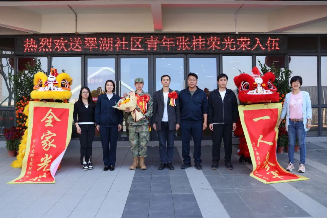 3月12日,中山南朗街道翠湖社區(qū)舉行2026年春季新兵入伍歡送儀式,為即將踏上軍旅征程的新兵張桂榮送行?;顒?dòng)現(xiàn)場(chǎng)鑼鼓喧天、醒獅起舞,社區(qū)“兩委”班子成員、工作人員、居民代表及新兵家屬共同見證這一光榮時(shí)刻。