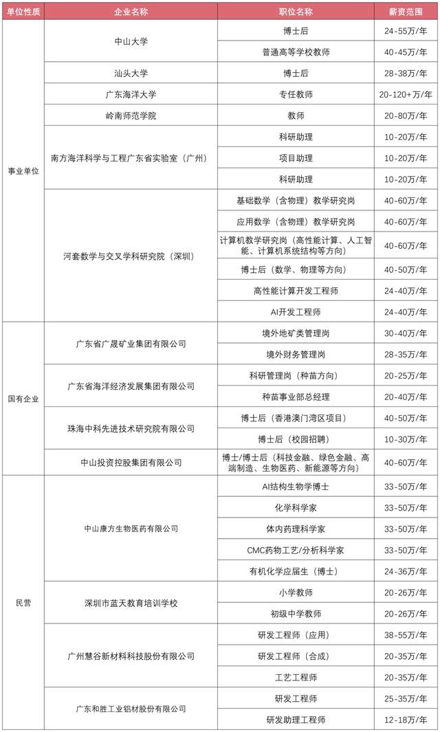 本次招聘會(huì),名企扎堆、高薪云集、賽道多元。匯聚中山大學(xué)、華南理工大學(xué)、汕頭大學(xué)、廣東海洋大學(xué)、騰訊科技(深圳)有限公司、河套數(shù)學(xué)與交叉學(xué)科研究院(深圳)、廣東省海洋經(jīng)濟(jì)發(fā)展集團(tuán)有限公司、深圳市聯(lián)贏激光股份有限公司、中山興中集團(tuán)有限公司、明陽智慧能源集團(tuán)股份公司等超230家次優(yōu)質(zhì)單位,涵蓋省屬國企、事業(yè)單位、上市公司;以及專精特新企業(yè)、高新技術(shù)企業(yè)、500強(qiáng)企業(yè)。產(chǎn)業(yè)覆蓋高端裝備、生物醫(yī)藥、新能源、新材料、電子信息、醫(yī)療衛(wèi)生、現(xiàn)代農(nóng)業(yè)等重點(diǎn)領(lǐng)域,發(fā)展空間廣闊。更有超多年薪50萬+優(yōu)質(zhì)崗位重磅來襲,薪酬待遇優(yōu)厚,高薪機(jī)遇等你來!