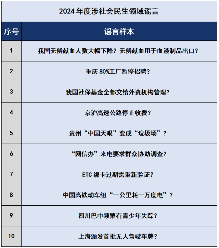 2024年2月,個(gè)別自媒體發(fā)出“無償獻(xiàn)血人數(shù)大幅下降,無償獻(xiàn)血用于血液制品出口”的不實(shí)言論,利用全社會(huì)對(duì)公益事業(yè)的關(guān)注和信息不對(duì)稱誤導(dǎo)公眾,故意抹黑我無償獻(xiàn)血政策,影響血液采集正常秩序,引發(fā)公眾對(duì)無償獻(xiàn)血的誤解。一些別有用心之人惡意編造謠言“我國社?;鹑冀唤o外資機(jī)構(gòu)管理”,抓住社?;鸸芾碇械牟糠终:献鬟M(jìn)行夸大和錯(cuò)誤解讀,以偏概全、歪曲事實(shí),引發(fā)公眾對(duì)社保體系的擔(dān)憂和恐慌。還有一些自媒體夸大其詞、虛構(gòu)數(shù)據(jù),捏造謠言“重慶80%工廠暫停招聘”,干擾勞動(dòng)力市場(chǎng)正常秩序,影響地區(qū)經(jīng)濟(jì)發(fā)展。所謂“‘網(wǎng)信辦’來電要求群眾協(xié)助調(diào)查”則實(shí)為詐騙分子冒充權(quán)威機(jī)構(gòu)行騙,嚴(yán)重?fù)p害政府部門的公信力。
