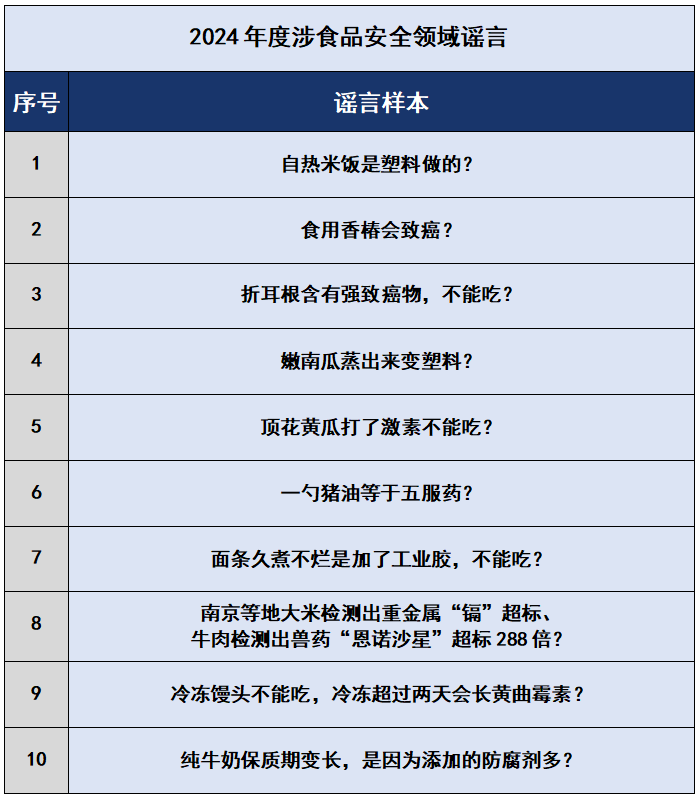 部分自媒體和網(wǎng)民利用人們對(duì)食品安全話題的關(guān)心關(guān)切,傳播涉食品安全相關(guān)不實(shí)信息,擾亂公眾視聽,販賣焦慮情緒。如“冷凍饅頭不能吃,冷凍超過兩天會(huì)長黃曲霉素”“頂花黃瓜打了激素不能吃”“食用香椿會(huì)致癌”“折耳根含有強(qiáng)致癌物,不能吃”等錯(cuò)誤說法,以關(guān)注公眾身體健康的名義,發(fā)布偽科普信息,引發(fā)公眾擔(dān)憂和恐慌,擾亂正常生活秩序。還有一些別有用心之人,惡意杜撰“南京等地大米檢測(cè)出重金屬‘鎘’超標(biāo)、牛肉檢測(cè)出獸藥‘恩諾沙星’超標(biāo)288倍”等謠言,嚴(yán)重歪曲事實(shí),企圖制造輿論恐慌,擾亂市場(chǎng)經(jīng)營秩序。而“嫩南瓜蒸出來變塑料”“自熱米飯是塑料做的”“面條久煮不爛是加了工業(yè)膠,不能吃”等傳言聳人聽聞,夸大其詞,不僅干擾消費(fèi)者判斷,還對(duì)相關(guān)行業(yè)發(fā)展造成不良影響。