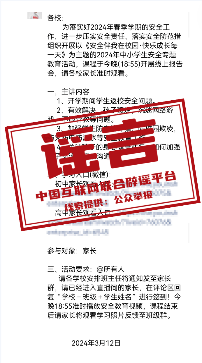 真相:近日,廣西北海40多所中小學(xué)接到自稱“當(dāng)?shù)叵狸爡⒅\”的電話,要求校方組織全校學(xué)生在互聯(lián)網(wǎng)上觀看所謂的“中小學(xué)生消防安全專題直播”。經(jīng)當(dāng)?shù)叵啦块T和教育部門聯(lián)合調(diào)查,該網(wǎng)絡(luò)直播活動為虛假活動。直播內(nèi)容與消防安全毫無關(guān)系,主播通過話術(shù)向家長販賣“升學(xué)、考學(xué)焦慮”,從而達到推銷網(wǎng)絡(luò)課程的目的。當(dāng)?shù)毓膊块T表示,該行為已涉嫌冒充國家機關(guān)工作人員招搖撞騙,將嚴肅追究涉案人員刑事責(zé)任。(來源:“中國消防”微信公眾號)