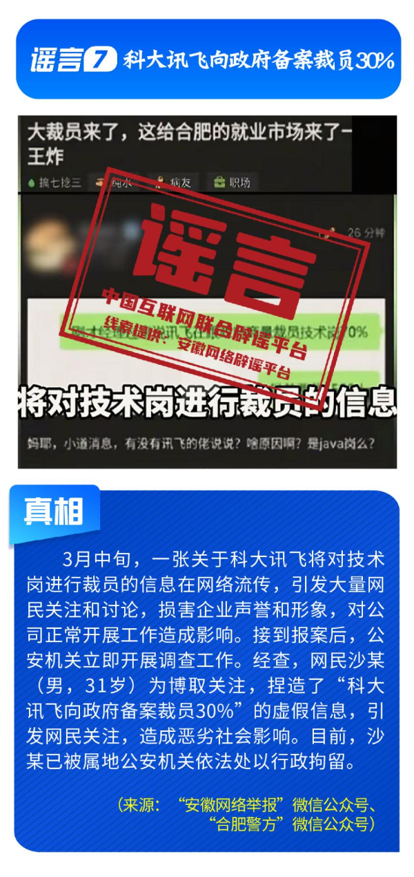偽造政策文件,擾亂市場(chǎng)預(yù)期。《七部門重磅發(fā)布AI安全治理三年行動(dòng)計(jì)劃》完全是自媒體憑空杜撰,工信部等部門公開表示并無相關(guān)文件;“科大訊飛向政府備案裁員30%”系網(wǎng)民為博關(guān)注而捏造;“農(nóng)業(yè)銀行”發(fā)送高額貸款短信實(shí)為營(yíng)銷號(hào)冒名發(fā)送,并非銀行官方行為;“深圳將禁行電動(dòng)自行車”是對(duì)管理措施征求意見稿的誤讀;“多地試點(diǎn)開征新能源汽車‘里程稅’”則列舉虛假試點(diǎn)地區(qū)與收費(fèi)標(biāo)準(zhǔn),已被多地稅務(wù)部門明確予以否認(rèn)。