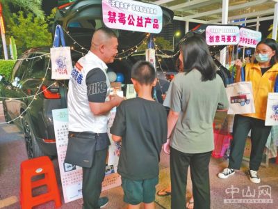 9月25日,夜幕降臨,中山市南區(qū)大信星匯店外,南區(qū)打擊治理電信網(wǎng)絡(luò)犯罪、掃黑除惡暨禁毒宣傳晚會的精彩表演吸引了不少市民駐足觀看。李德朗身穿白色的義工服,正積極向來來往往的行人介紹各款由戒毒學(xué)員制作的手工作品。被毒癮困擾多年成功戒斷的李德朗在清風(fēng)自游人公益服務(wù)中心社工引導(dǎo)下加入“友心人”隊(duì)伍,成為一名義工,對徹底擺脫毒癮更有信心。