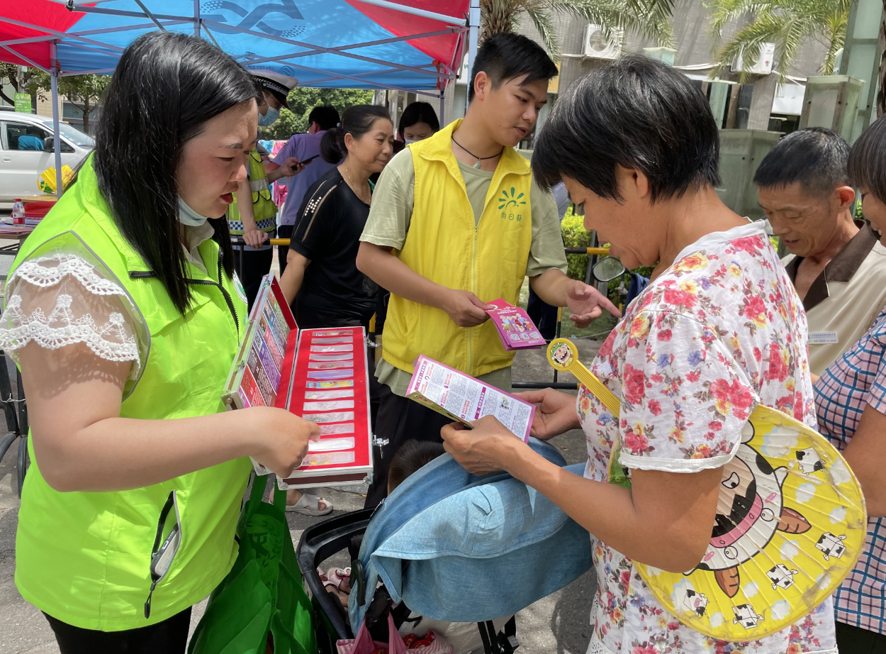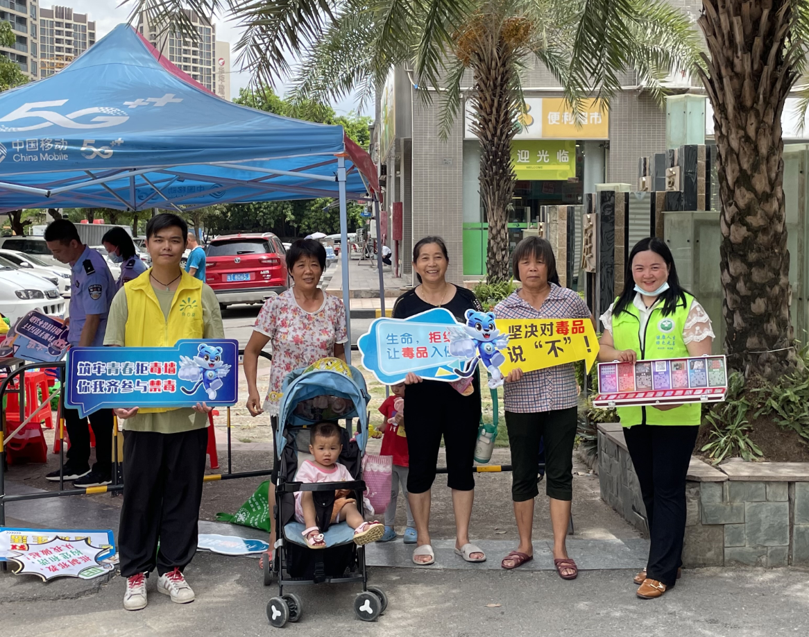 為進(jìn)一步提高阜沙鎮(zhèn)人民群眾抵制毒品的意識和能力,積極調(diào)動(dòng)廣大群眾參與禁毒的積極性。2021年6月12日下午,阜沙鎮(zhèn)禁毒辦聯(lián)合禁毒社工深入到羅松村阜豐豪庭小區(qū)一帶開展以“健康人生,綠色無毒”為主題的禁毒宣傳活動(dòng)。