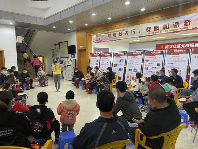 12月26日,大涌鎮(zhèn)南文社區(qū)一片熱鬧,鼓聲此起彼伏。100多名群眾在南文社區(qū)黨群服務(wù)中心了解禁毒知識,體驗(yàn)“鼓圈”文化。