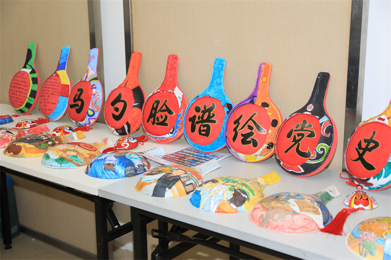 中國(guó)共產(chǎn)黨成立100周年標(biāo)識(shí)、井岡山勝利會(huì)師、南昌起義、嘉興游船上舉行的中共一大、萬(wàn)里長(zhǎng)征路……分享會(huì)現(xiàn)場(chǎng),刻畫(huà)了一個(gè)個(gè)黨史故事的木瓢排列成行,十分引人注目?!斑@是國(guó)家級(jí)非物質(zhì)文化遺產(chǎn)——馬勺臉譜。它是陜西的傳統(tǒng)民間藝術(shù),以馬勺作‘紙’,將社火臉譜以彩繪的形式繪制在上面?!瘪R勺臉譜傳承者、沙溪中學(xué)老師馬世杰介紹。作為一名美術(shù)老師,馬世杰通過(guò)民間藝術(shù)的再創(chuàng)新來(lái)引導(dǎo)學(xué)生學(xué)習(xí)黨史,在他的帶領(lǐng)下,沙溪中學(xué)的學(xué)生將南粵特色、中山元素、國(guó)風(fēng)動(dòng)漫等融入馬勺臉譜的創(chuàng)作中。“繪制黨史故事前,我們查閱了大量資料,并向?qū)<覍W(xué)者請(qǐng)教,在創(chuàng)作中引導(dǎo)學(xué)生們了解、學(xué)習(xí)黨史?!?/p>